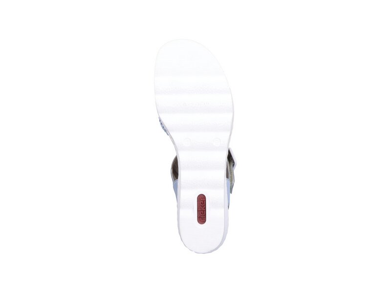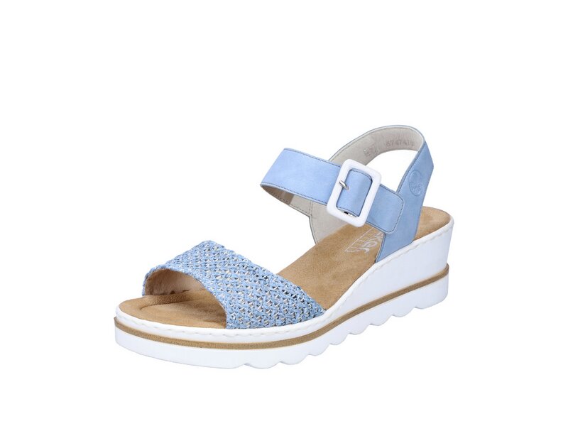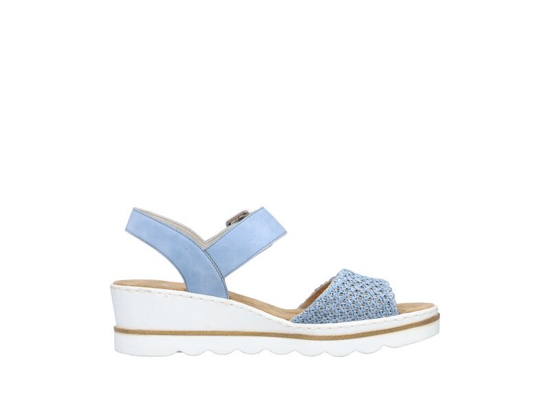 Luftig, bequem und dazu noch gut aussehen? Diese himmelblauen Keilsandaletten von Rieker garantieren ein himmlisches Tragegefühl. Dank breiter Riemen und einem Klettverschluss passt sich das Modell dem Fuß individuell an. Für zusätzlichen Halt sorgt der breite Fersenriemen. Die schockabsorbierende und sehr leichte Sohle mit Keilabsatz bietet anhaltendes Wohlgefühl ? auch an langen Tagen. Achtung Lieblingsschuh-Potential!