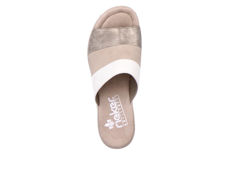Creme de la creme! Diese hellbeigen Pantoletten aus Kunstleder von Rieker geben dem Fuß Freiraum und halten ihn dennoch sicher. Ohne Verschluss lässt sich das Modell außerdem fix anziehen. Die leichte und schockabsorbierende Sohle mit Keilabsatz federt jeden Schritt ab. Ein weiteres Plus ist die extra weiche Decksohle. Modisches Wohlgefühl im Stil von Rieker!
