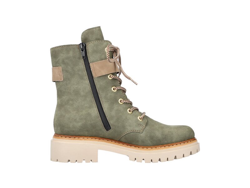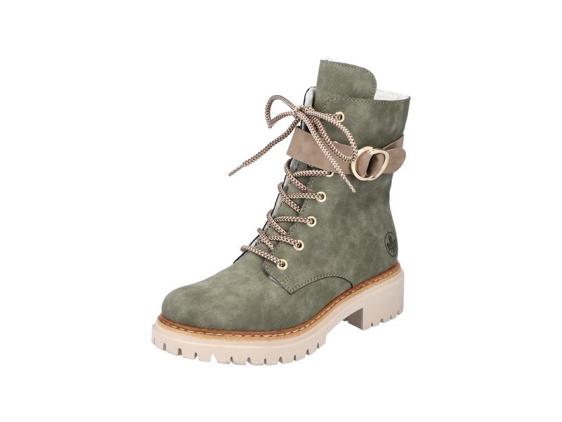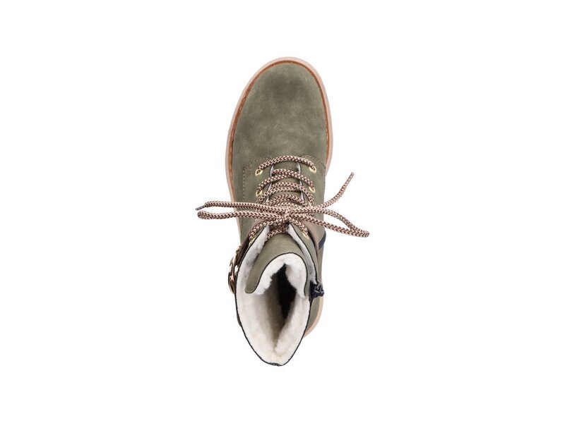 Dream-Team – Style und Comfort! Ohne diese stylischen laubgrünen Biker Boots von Rieker würde die kalte Saison nur halb so viel Spaß machen. Trotz Schnürung kann der Schuh ganz einfach mit einem Reißverschluss geschlossen werden. Die dekorative goldene Schnalle an der Seite verleiht dem Schuh das gewisse Etwas. Mit der schockabsorbierenden und leichten Sohle werden deine Füße bei jedem Schritt verwöhnt und die extra weiche Decksohle ist ein weiteres Plus. Für alle Ladies mit Größe 43 gibt es diese Biker Boots auch in Übergrößen. Kuscheliges Warmfutter hält die Füße garantiert den ganzen Tag über schön warm. 100% Lieblingsschuh-Potential!