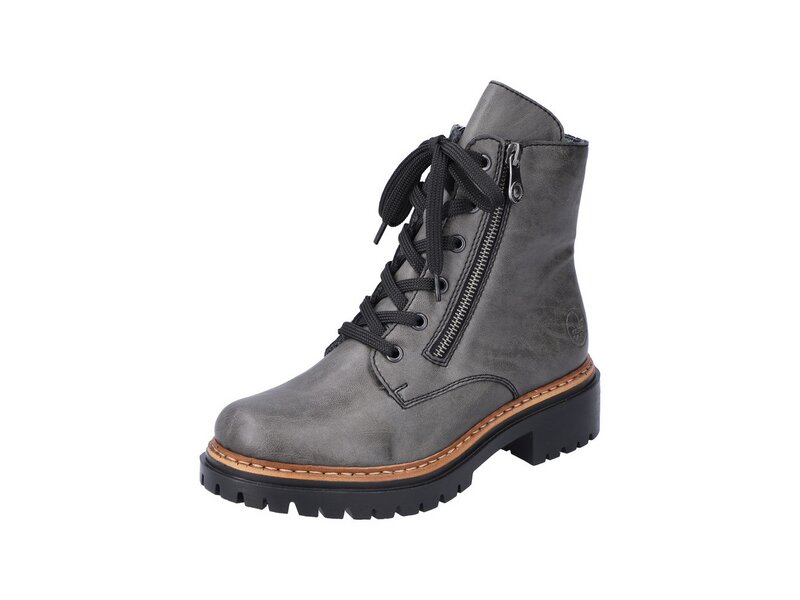 Achtung, Lieblingsschuh-Potential! Diese grauen Biker Boots von Rieker vereinen cooles Design mit bestem Komfort und hoher Funktionalität. Trotz Schnürung kann der Schuh ganz einfach mit einem Reißverschluss geschlossen werden. Die schockabsorbierende und leichte Sohle bietet besten Laufkomfort und die extra weiche Decksohle sorgt für mehr Bequemlichkeit. Das Modell ist optional auch in Übergrößen erhältlich. Alles in einem – top!