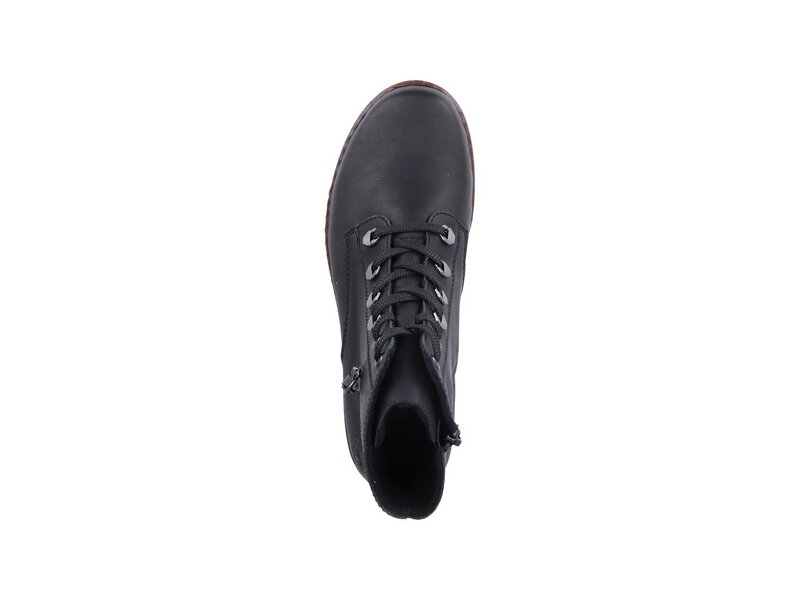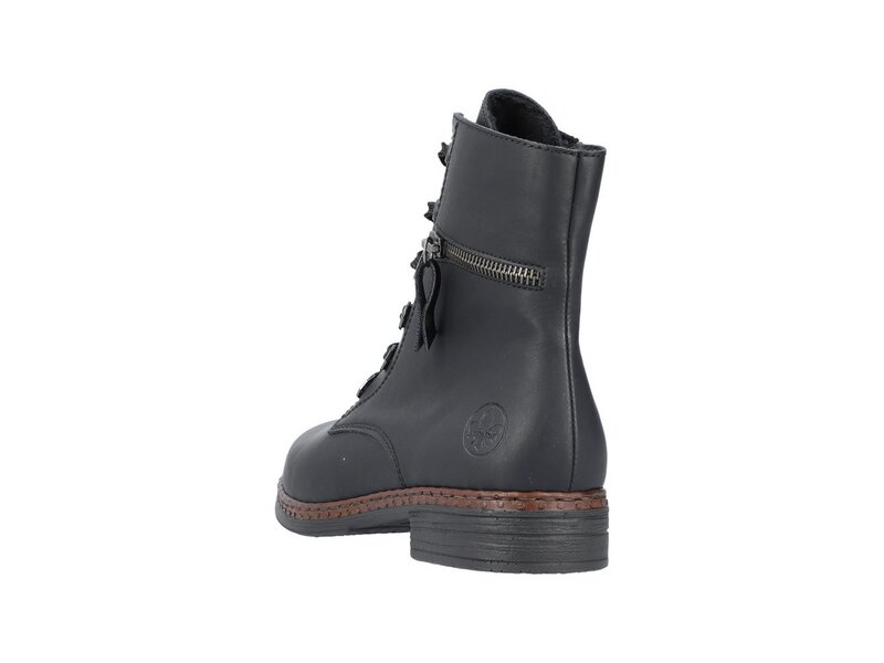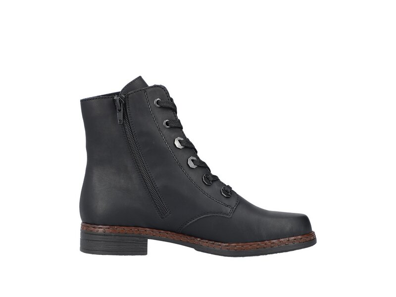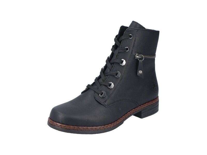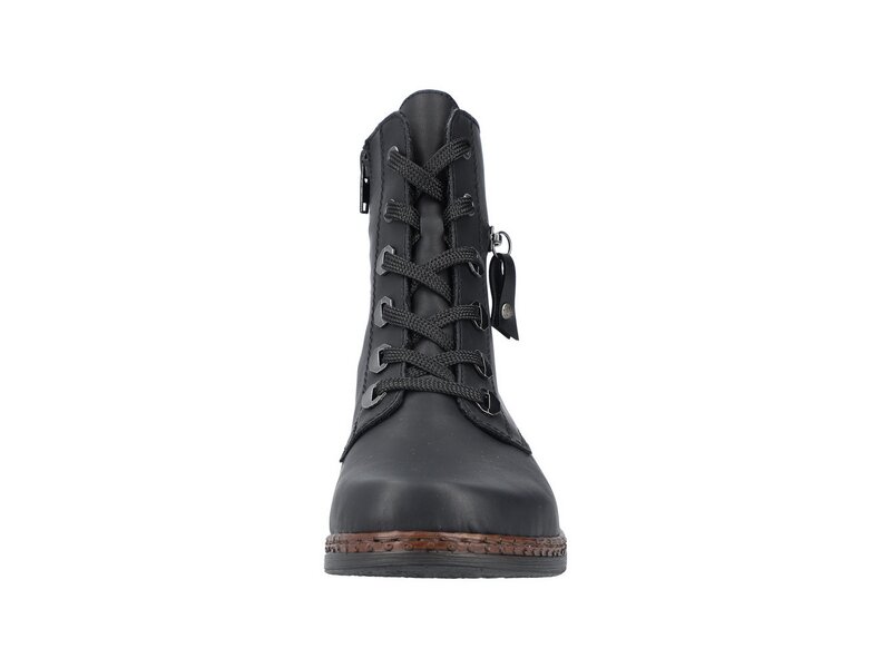 Style und Komfort - für immer unzertrennlich! Rieker beweist mit diesen nachtschwarzen Schnürstiefeln einmal mehr, dass man Komfort mit modischem Aussehen vereinen kann. Die clevere Kombination aus Schnürung und Reißverschluss gibt idealen Halt und ermöglicht ein einfaches An- und Ausziehen. Die leichte und schockabsorbierende Sohle sorgt für ein angenehmes Laufgefühl auch bei langem Tragen und die extra weiche Decksohle sorgt für mehr Tragekomfort. Also nichts wie los!