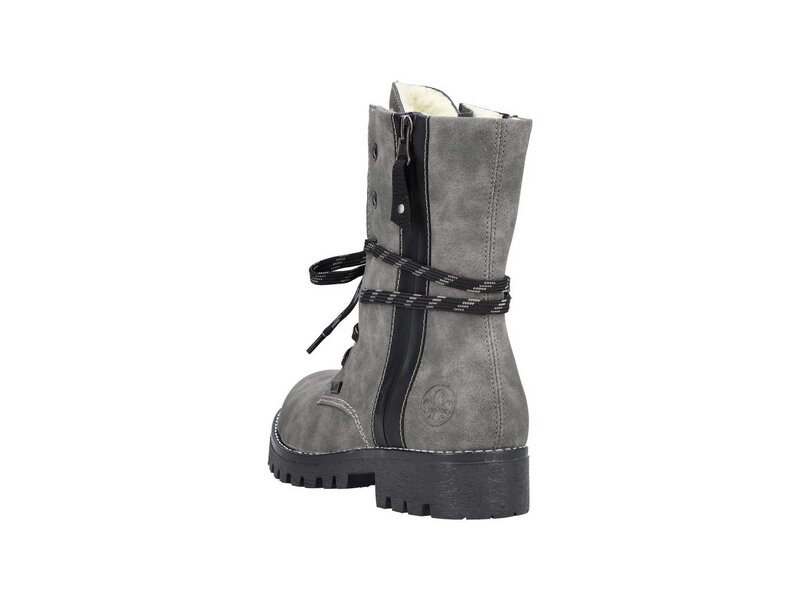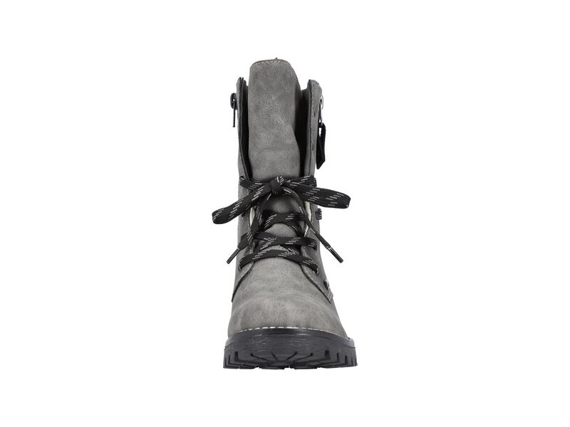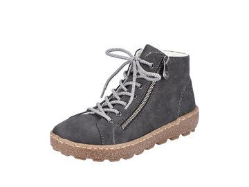 Schluss mit kalten Füßen! Diese mondgrauen Schnürstiefel von Rieker überzeugen durch modernes Design und hohen Tragekomfort. Neben der Schnürung ist das Modell auch mit einem Reißverschluss versehen und sorgt so für guten Halt. Der auffällige schwarze Außenreißverschluss an der Seite ist ein hübsches Detail. Die robuste Profilsohle gibt Halt auf unterschiedlichen Wegen. Für alle Ladies mit Größe 43 gibt es diese Schnürstiefel auch in Übergrößen. Die Füße bleiben dank der kuscheligen Fütterung garantiert den ganzen Tag lang warm und dank der RiekerTEX-Technologie auch trocken. Achtung, Lieblingsschuh-Potential!