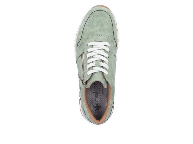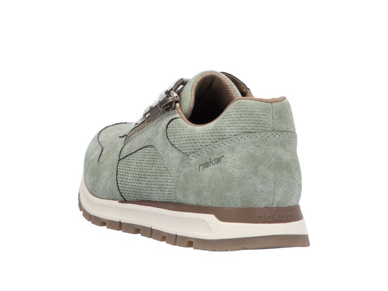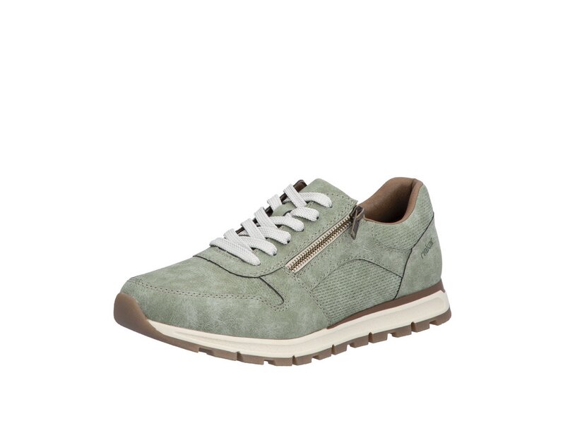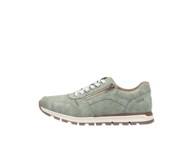 Stylisch oder komfortabel? Wieso oder? Mit diesen grüngrauen Rieker Sneakern bist du cool und lässig auf Achse. Die clevere Kombination aus Reißverschluss und Schnürung ermöglicht ein schnelles An- und Ausziehen. Die Sohle ist griffig und sorgt jederzeit für guten Grip. Die gepolsterte und herausnehmbare Einlegesohle ist ein cooles Feature, das für praktischen Komfort sorgt. Das Modell ist in Extraweite I geschnitten und sichert dem Fuß genügend Freiraum. Der Schuh ist mit offenporigem Material gefüttert, das besonders atmungsaktiv und feuchtigkeitsabsorbierend ist. Gesucht, gefunden!