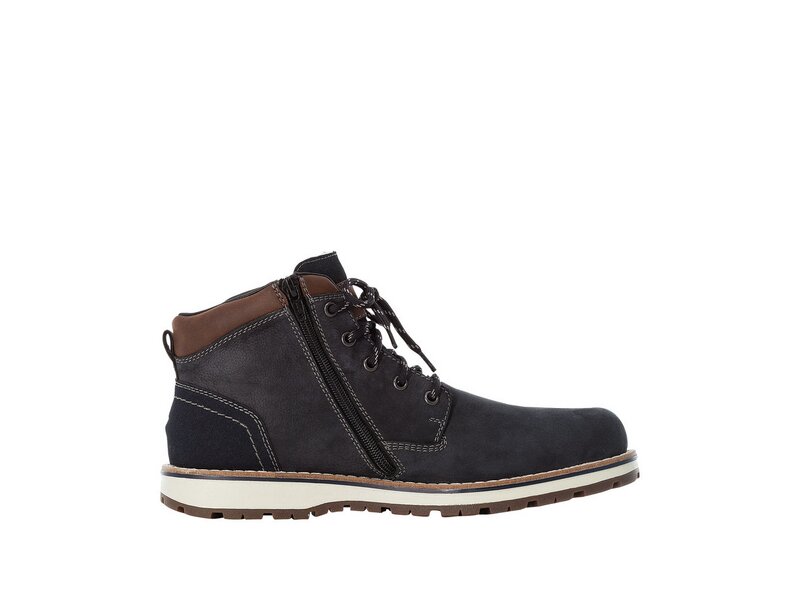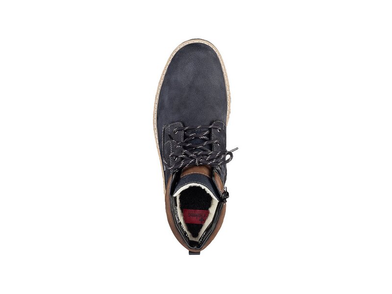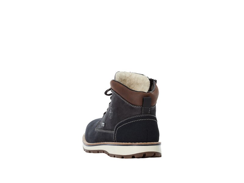 Immer einen Schritt voraus! Diese pazifikblauen Schnürstiefel aus Glattleder überzeugen mit Design und funktionalen Features für das kühle Wetter. Neben der Schnürung ist das Modell auch mit einem Reißverschluss versehen und sorgt so für bestmöglichen Halt. Die kontrastierenden weißen Nähte an der Seite setzen das Design modisch in Szene. Die robuste Profilsohle überzeugt auf ganzer Linie und die extra weiche Decksohle ist ein weiteres Plus. Durch die Komfortweite G 1/2 ist den Zehen mehr Bewegungsfreiheit geboten. Das kuschelige und sehr warme Schurwoll-Futter und die bewährte RiekerTEX-Technologie machen diesen Schnürstiefel zum optimalen Begleiter – perfekt für nass-kalte Tage. Diese Schuhe sind die perfekte Symbiose aus Stil und Komfort!