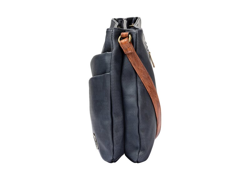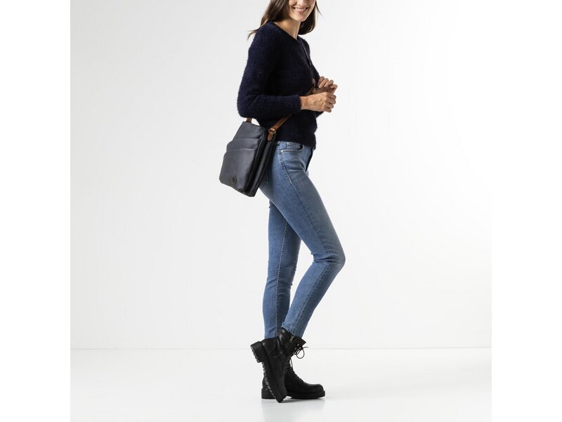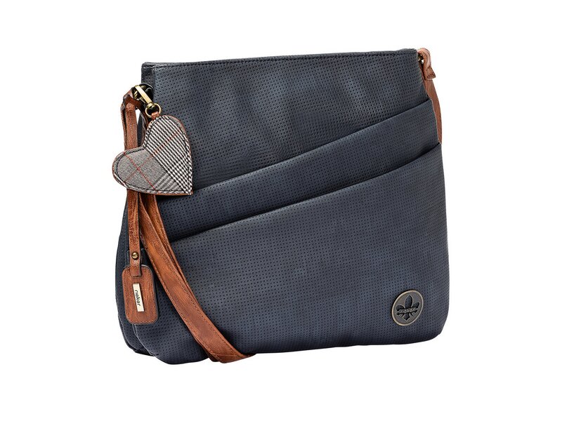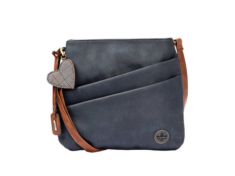 Diese Handtasche von Rieker aus blauem Kunstleder mit braunem Schulterriemen bietet jede Menge Platz. Der süße Herzanhänger in britischem Muster ist ein hübscher Eyecatcher! Die Tasche hat einen praktischen Reißverschluss, der im Nu verschlossen werden kann. Bestens geeignet für den Alltag oder kleine Trips!