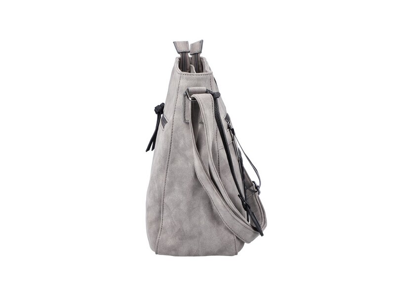 Grau und Schwarz sind alles andere als langweilig! Denn in der trendigen Kombi und verwaschener Optik macht das Design einiges her. Auch funktional hat die Tasche allerhand zu bieten: Das große Hauptfach ist praktisch unterteilt und die außenliegenden Nebenfächer bieten zusätzlichen Platz. Zudem verfügt die Tasche über einen verstellbaren Schulterriemen, durch den sie bequem über der Schulter getragen werden kann.