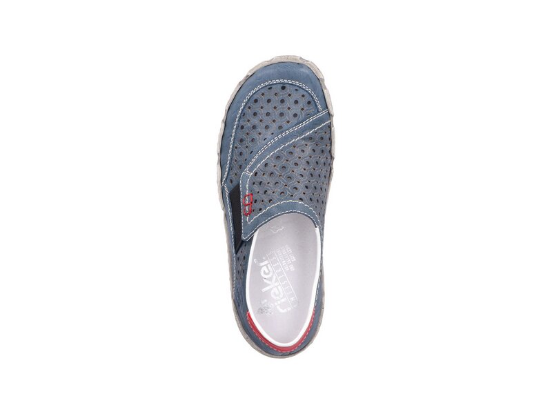 Achtung Trendalarm! Diese schieferblauen Slipper aus Glattleder von Rieker sind super lässig und total bequem. Das Modell kann ohne Verschluss ganz einfach durch Hineinschlüpfen angezogen werden. Die leichte und schockabsorbierende Sohle verspricht Trittsicherheit und die extra weiche Decksohle ist ein weiteres Plus. 100% Lieblingsschuh-Potential!