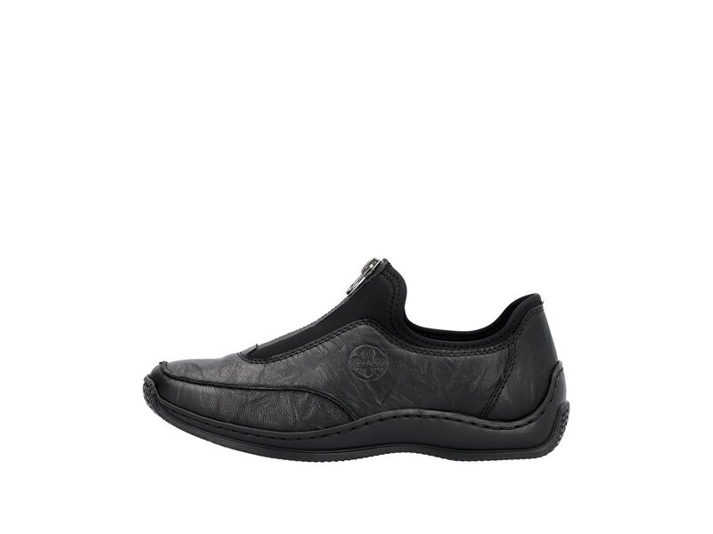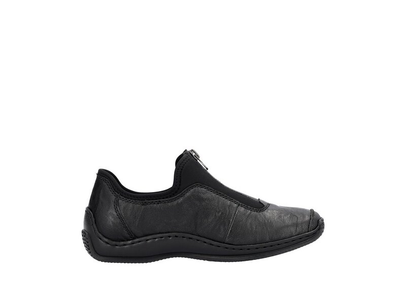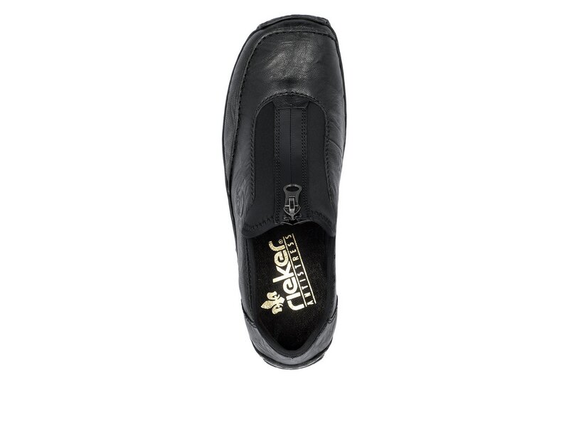 Alleskönner! Diese mitternachtsschwarzen Rieker Slipper aus Glattleder sind der perfekte Begleiter für jeden Anlass. Durch den Reißverschluss kann der Schuh ganz schnell angezogen werden. Die schockabsorbierende und leichte Sohle verwöhnt die Füße darüber hinaus bei jedem Schritt. Extra-Halt ist durch die schmale Passform E 1/2 geboten. Also nichts wie los!