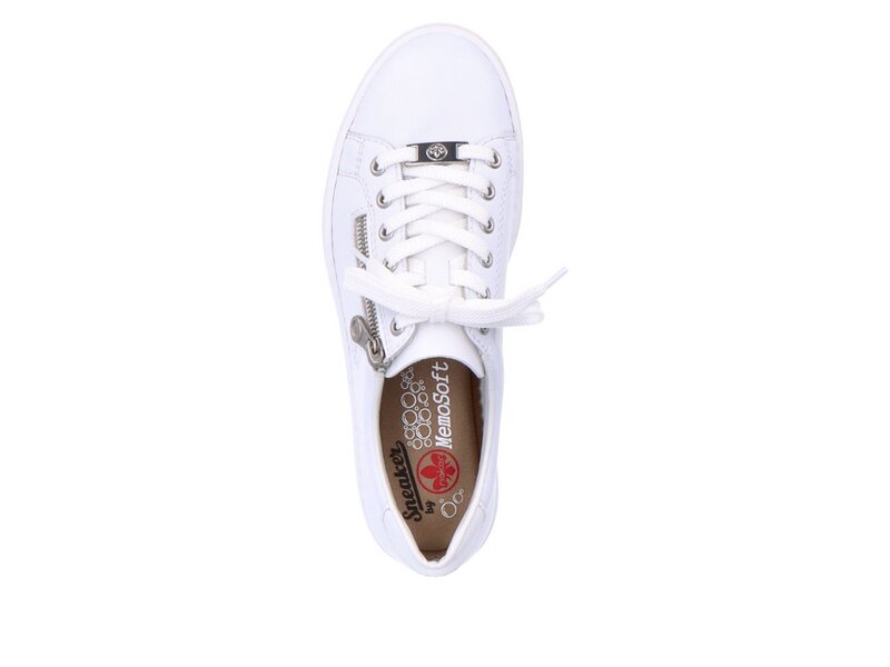 Achtung Trendalarm! Diese edelweißen Rieker Sneaker aus Glattleder überzeugen mit echtem Komfort für die Füße. Trotz Schnürung kann der Schuh ganz einfach mit einem Reißverschluss geschlossen werden. Die griffige Sohle überzeugt auf ganzer Linie und die extra weiche MemoSoft-Decksohle sorgt für mehr Tragekomfort. Trageluxus pur!