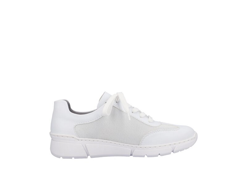 Fashion-Lovers aufgepasst: Die Rieker Must-Haves sind da! Diese kristallweißen Sneaker mit Beige aus Kunstleder von Rieker sind super lässig und total bequem. Die clevere Kombination aus Schnürung und Reißverschluss gibt idealen Halt und ermöglicht ein einfaches An- und Ausziehen. Die schockabsorbierende und leichte Sohle bietet anhaltendes Wohlgefühl ? auch an langen Tagen. Die extra weiche und herausnehmbare Einlegesohle sorgt für maximalen Komfort. Darüber hinaus ist deinen Füßen durch die Komfortweite G mehr Bewegungsfreiraum im Vorfußbereich geboten. Gesucht, gefunden!