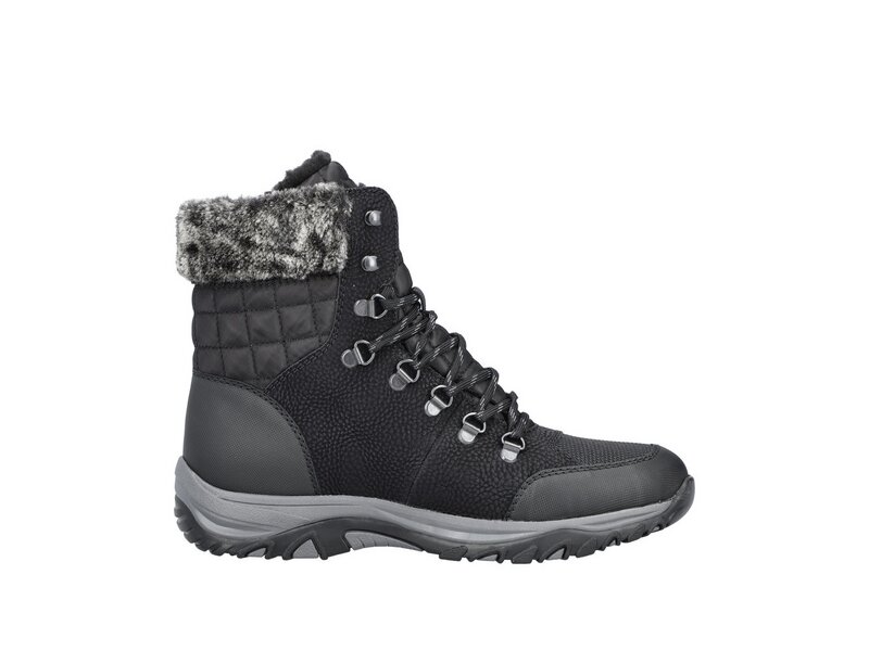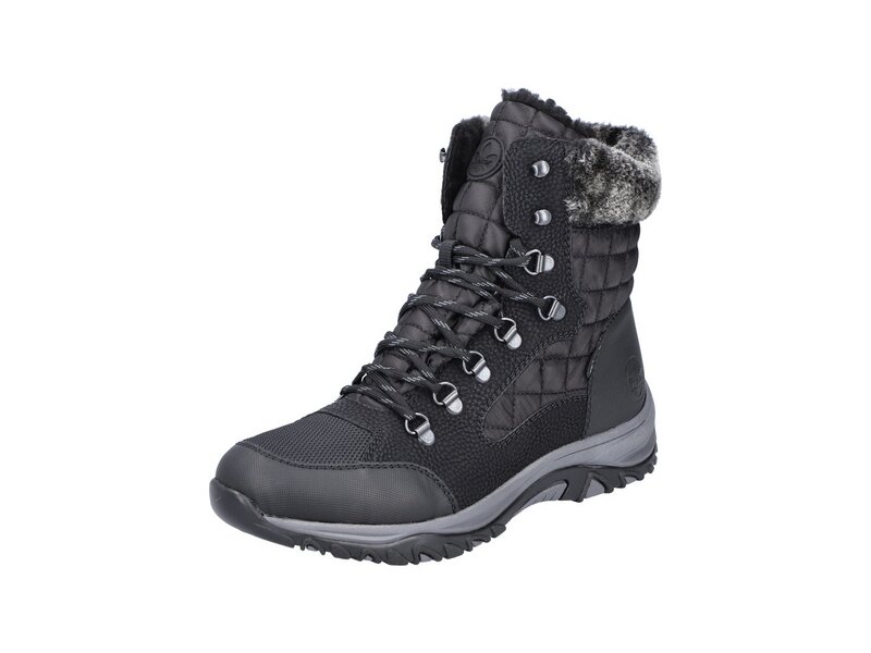 Immer einen Schritt voraus! Diese tiefschwarzen Schnürstiefel überzeugen mit Style und funktionalen Features für das kühle Wetter. Zudem sorgt die zweifarbige Schnürung dafür, dass der Schuh jederzeit gut sitzt. Durch die robuste Profilsohle ist jeder Schritt eine sichere Angelegenheit. Die gepolsterte und herausnehmbare Einlegesohle sorgt für maximalen Komfort. Die Schnürstiefel in Komfortweite sind optional bis zur Schuhgröße 43 erhältlich! Auch in puncto Komfort landet man mit dem Schuh dank der wasserabweisenden RiekerTEX-Membran und dem flauschigen Warmfutter einen Volltreffer. Einfach top!