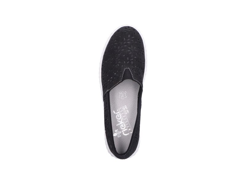 Komfort und gutes Aussehen - das geht! Diese Ballerinas von Rieker aus Kunstleder möchte man gar nicht mehr ausziehen. Der Elastikeinsatz macht das An- und Ausziehen einfach und bequem. Die robuste und griffige Sohle überzeugt auf ganzer Linie und die extra weiche Decksohle sorgt für mehr Tragekomfort. 100% Lieblingsschuh-Potential!