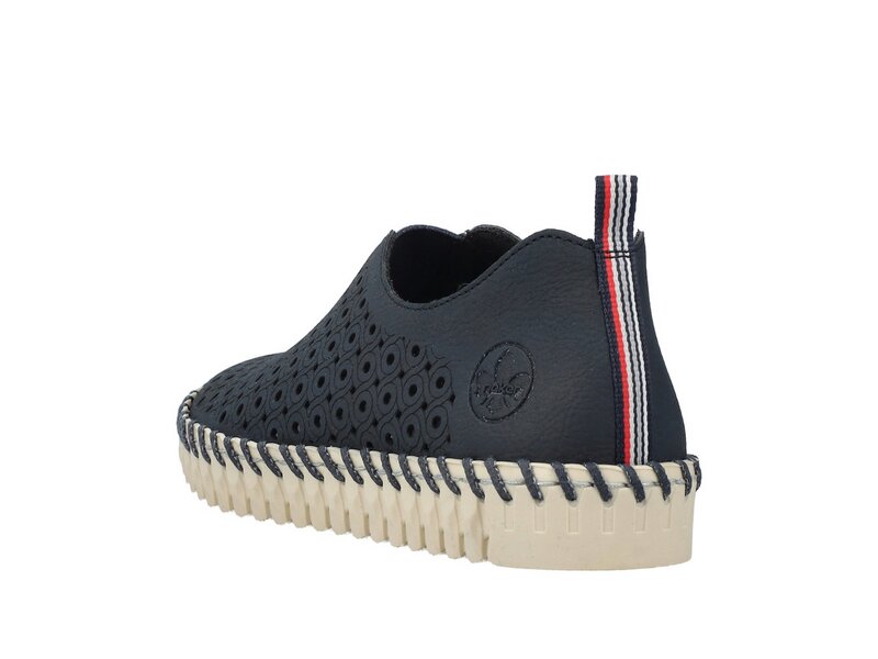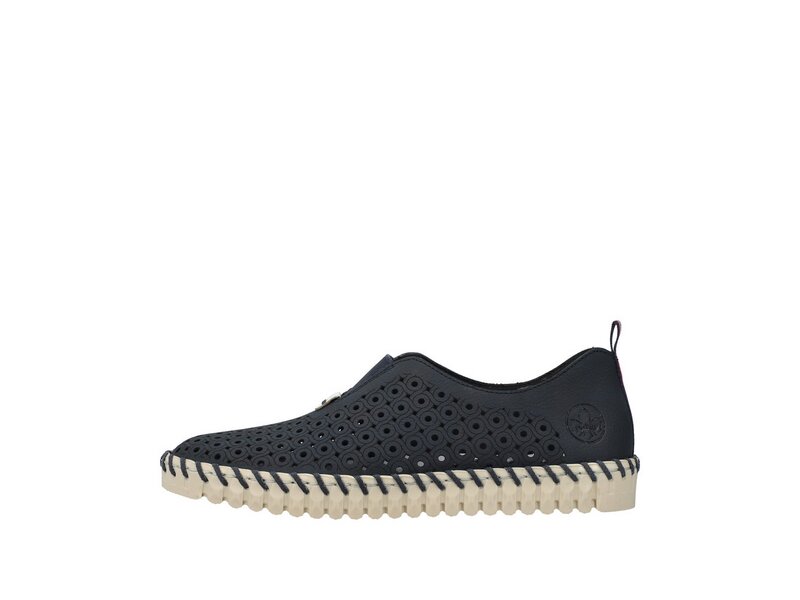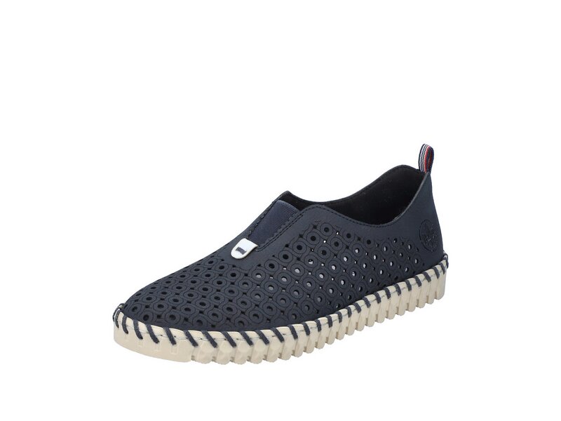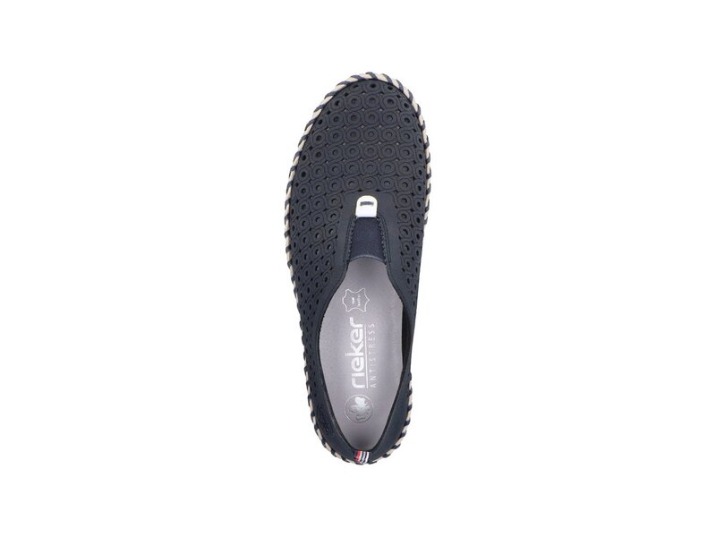 Dream-Team – Style und Comfort! Diese stahlblauen Rieker Slipper sehen nicht nur stylisch aus, sondern sorgen dank ihrer Qualität auch für den gewissen Komfort im Alltag. Der Elastikeinsatz stellt darüber hinaus sicher, dass der Schuh jederzeit sitzt. Der durchbrochene Stil frischt das Design geschickt auf. Durch die abriebfeste und sehr leichte Sohle ist Trittsicherheit auch auf nassen Wegen gegeben. Ein weiteres Plus ist das extra weiche Decksohle. Wohlge(h)fühl inklusive!