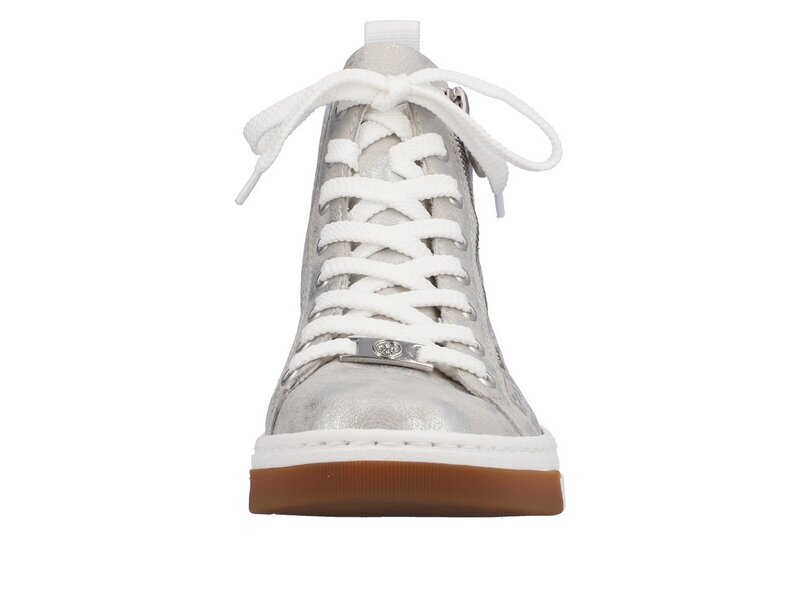 Traum in Grau! Diese silbergrauen Rieker Sneaker überzeugen mit einem klassischen Design und hohem Komfort. Die clevere Kombination aus Reißverschluss und Schnürung ermöglicht ein einfaches An- und Ausziehen. Die griffige Sohle überzeugt auf ganzer Linie. Mit der gepolsterten und herausnehmbaren Einlegesohle verfügen die Sneaker über ein weiteres, praktisches Komfort-Feature. Dank der Komfortweite G ist genügend Platz im Vorfußbereich geboten. 100% Lieblingsschuh-Potential!