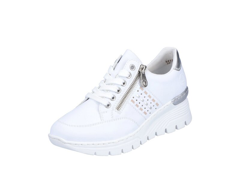 Urlaubsfeeling für die Füße! Diese lässigen Sneaker aus Kunstleder von Rieker sind gemütliche Begleiter auf all deinen Wegen. Trotz Schnürung kann der Schuh ganz einfach mit einem Reißverschluss geschlossen werden. Die sehr leichte und schockabsorbierende Sohle mit Keilabsatz bietet anhaltendes Wohlgefühl ? auch an langen Tagen. Die herausnehmbare Einlegesohle sorgt für maximalen Komfort. Außerdem ist deinen Füßen durch die Komfortweite G mehr Bewegungsfreiraum im Vorfußbereich geboten. 100% Lieblingsschuh-Potential!