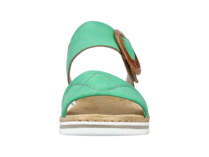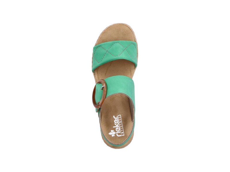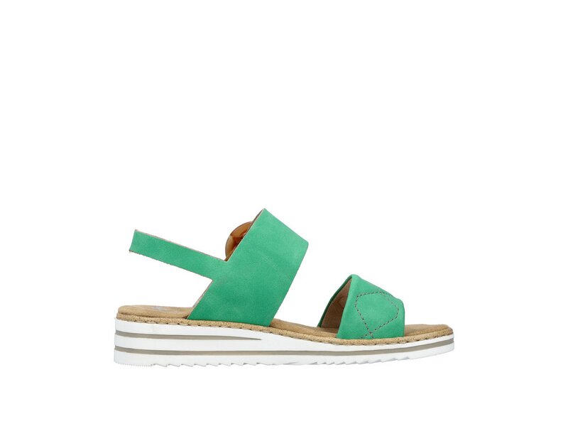 Walking on Sunshine – zumindest gefühlt. Diese laubgrünen Keilsandaletten aus Kunstleder von Rieker geben dem Fuß Freiraum und halten ihn dennoch sicher. Optimaler Halt und eine gute Passform sind durch breite Riemen, einen verstellbaren Klettverschluss und einen schmalen Fersenriemen garantiert. Die schockabsorbierende und leichte Sohle mit Keilabsatz bietet anhaltendes Wohlgefühl ? auch an langen Tagen. Ein weiteres Plus ist die extra weiche Decksohle. Durch die schmale Passform E 1/2 bieten die Keilsandaletten zusätzlichen Halt. Schöner Nebeneffekt: Man ist gleich ein paar Zentimeter größer!