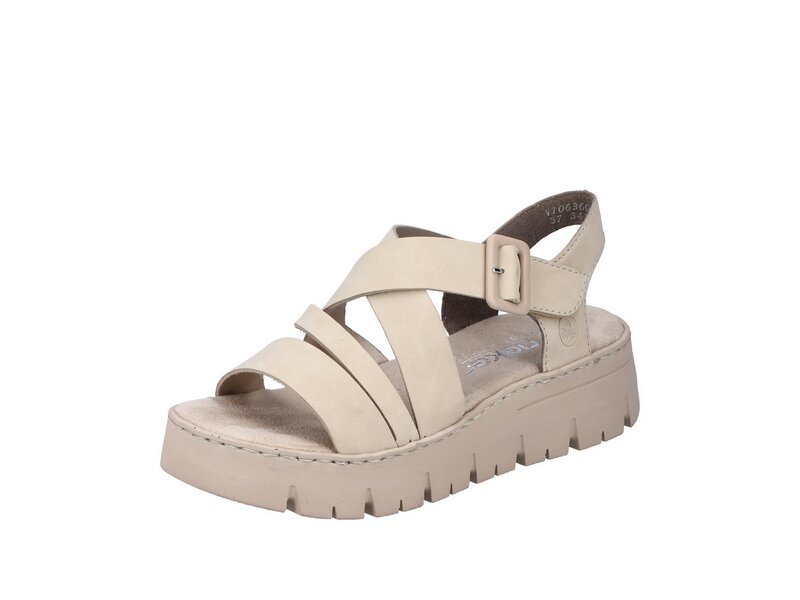 Schöne Tage, schöne Schuhe! Diese hellbeigen Rieker Riemchensandalen garantieren ein himmlisches Tragegefühl. Für bestmöglichen Halt sind die praktischen Schuhe mit einem Fersenriemen und einem Klettverschluss ausgestattet. Mit der schockabsorbierenden und leichten Plateausohle freuen sich die Füße über besten Laufkomfort bei jedem Schritt. Ein weiteres Plus ist die extra weiche Decksohle. Durch die schmale Passform E 1/2 bieten die Riemchensandalen zusätzlichen Halt. Gesucht, gefunden!
