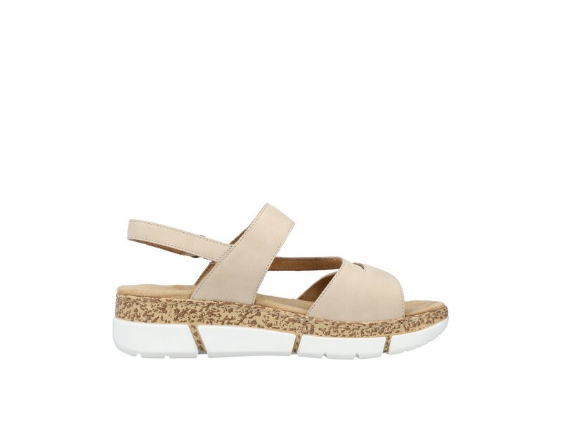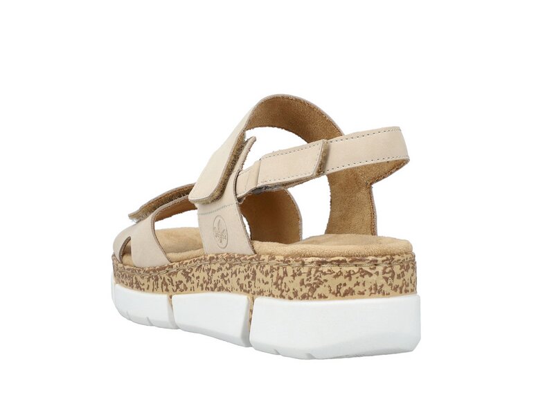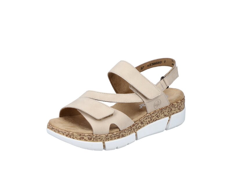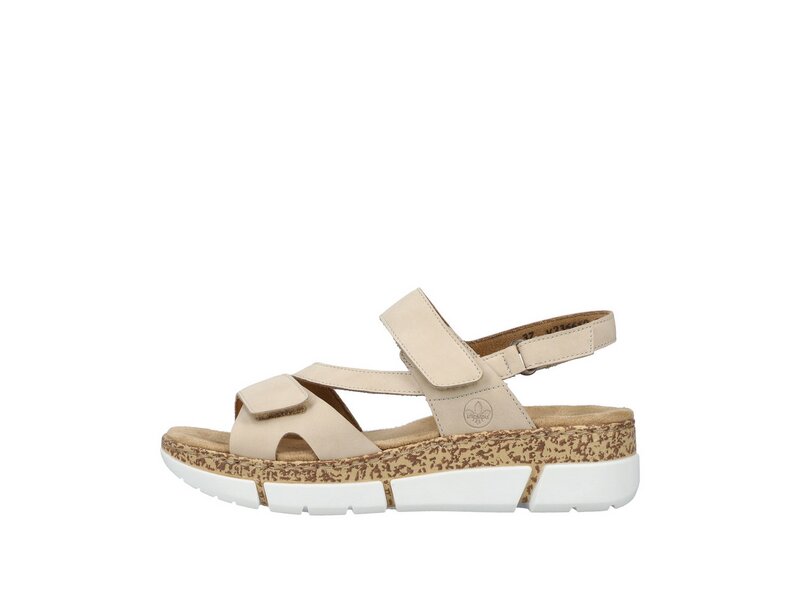 Achtung, Lieblingsschuh-Potential! Mit diesen hellbeigen Rieker Riemchensandalen wird die warme Saison noch schöner! Breite Riemen und ein Klettverschluss sorgen zusammen mit dem schmalen Fersenband für optimalen Halt. Die Plateausohle ist sowohl leicht als auch schockabsorbierend und bietet damit ein doppeltes Wohlgefühl bei jedem Schritt. Außerdem sorgt die extra weiche Decksohle für eine Extraportion Tragekomfort. Durch die schmale Passform E 1/2 sitzt der Schuh wie angegossen. 100% Lieblingsschuh-Potential!