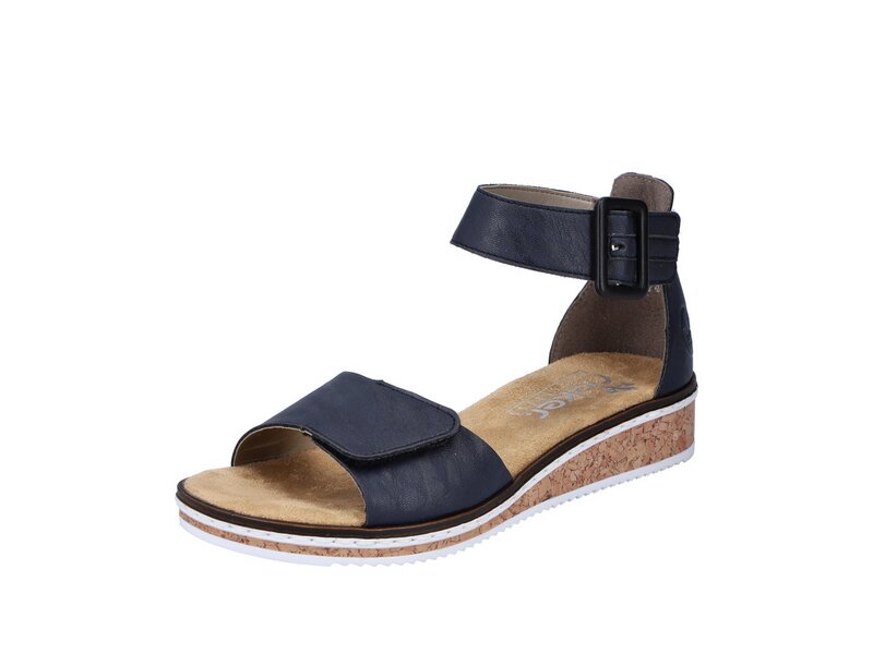 Wir lieben Blau! Diese Keilsandaletten von Rieker aus Kunstleder möchte man gar nicht mehr ausziehen. Das Modell ist dank eines Klettverschlusses in Nullkommanichts angezogen. Die schockabsorbierende und leichte Sohle mit Keilabsatz bietet anhaltendes Wohlgefühl ? auch an langen Tagen. Modisches Wellness-Feeling im Stil von Rieker!