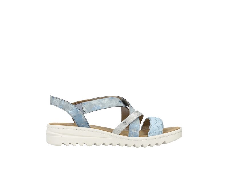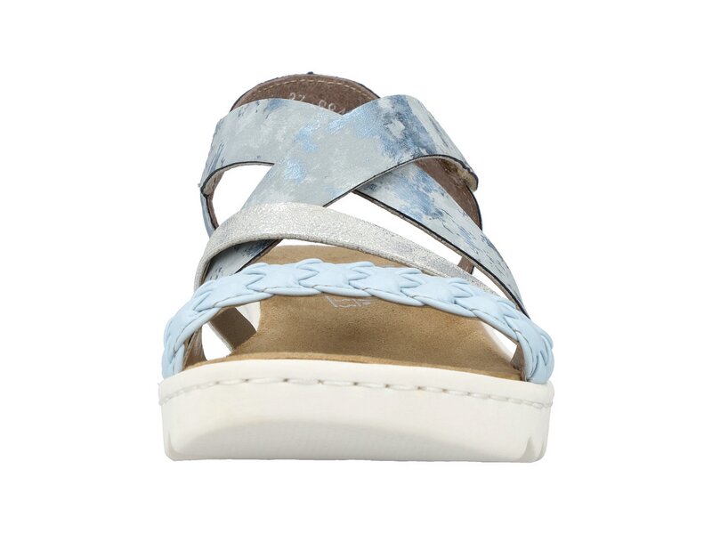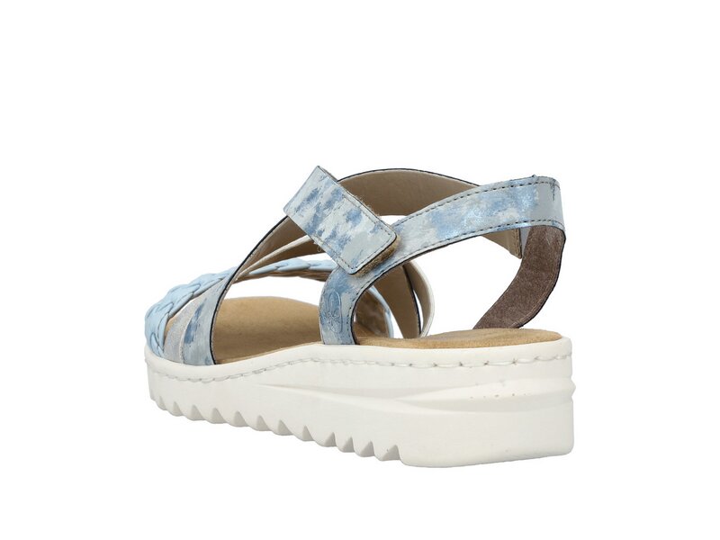 Achtung Lieblingsschuh-Potential! Diese himmelblauen Keilsandaletten aus Kunstleder von Rieker garantieren ein himmlisches Tragegefühl. Dank überkreuzter Riemen und einem Klettverschluss passt sich das Modell dem Fuß individuell an. Für zusätzlichen Halt sorgt der schmale Fersenriemen. Die schockabsorbierende und leichte Sohle mit Keilabsatz bietet anhaltendes Wohlgefühl ? auch an langen Tagen. Außerdem sorgt die extra weiche Decksohle für eine Extraportion Tragekomfort. Gesucht, gefunden!