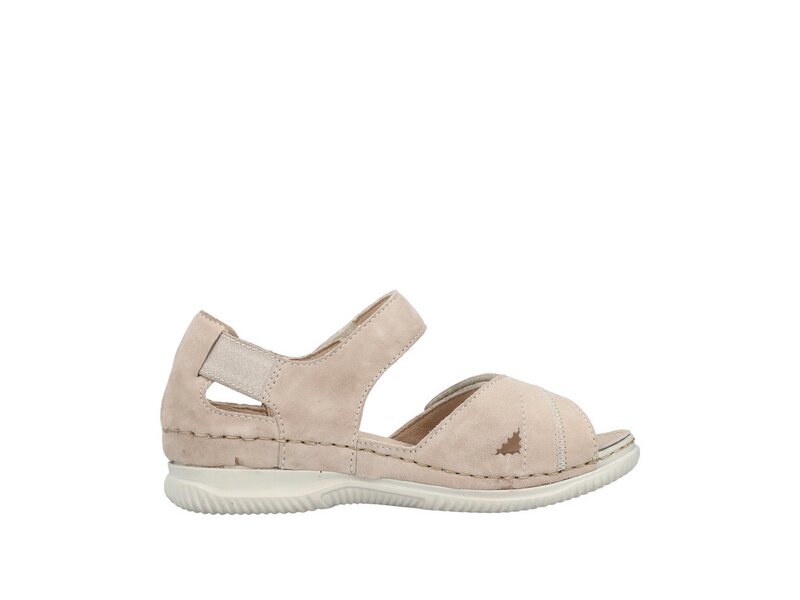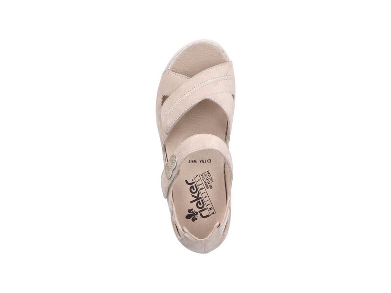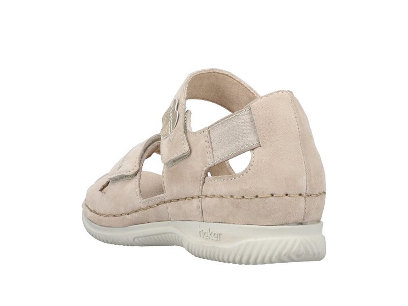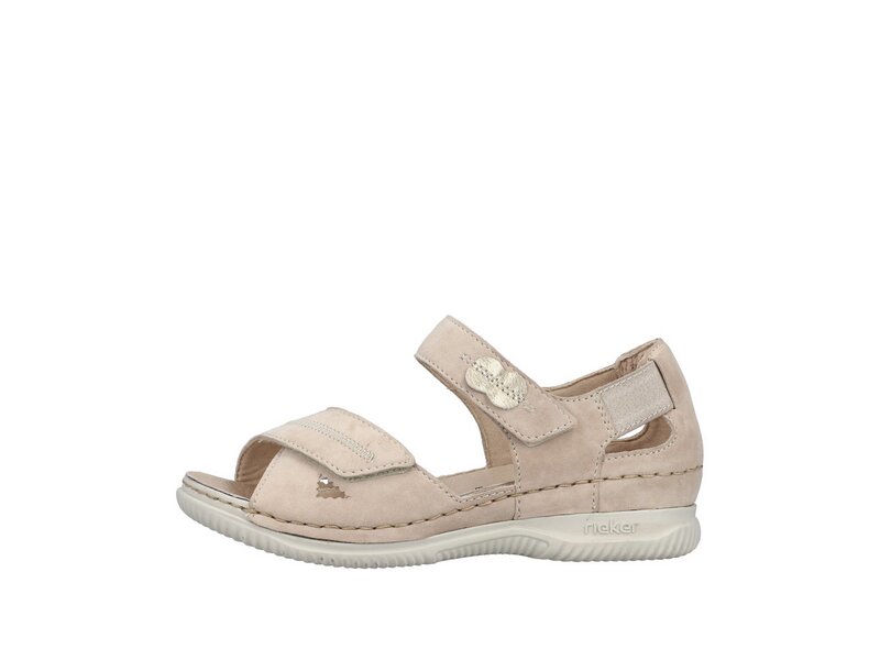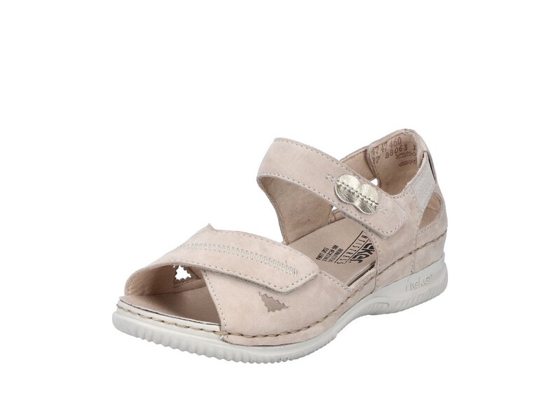 Alles in einem Schuh! Diese hellbeigen Rieker Riemchensandalen aus Rauleder geben dem Fuß Freiraum und halten ihn dennoch sicher. Durch den Klettverschluss kann der Schuh ganz schnell angezogen werden. Die kreisförmigen Schmuckelemente sind hübsche Details. Dank der leichten und schockabsorbierenden Sohle und dem herausnehmbaren Fußbett ist das Gehen ein Leichtes. Durch die Extraweite H ist dir mehr Freiraum im Schuh geboten. Summer is on!