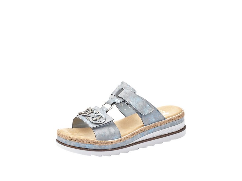 Auf dem Fashion-Radar! Diese Pantoletten von Rieker aus Kunstleder möchte man gar nicht mehr ausziehen. Sie sind dank eines Klettverschlusses in Nullkommanichts angezogen. Der Mittelriemen mit kreisförmigem Element ist ein schöner Eyecatcher. Die sehr leichte und schockabsorbierende Sohle mit Keilabsatz federt jeden Schritt gekonnt ab. Ein weiteres Plus ist die extra weiche Decksohle. Zudem bietet die schmale Passform E 1/2 zusätzlichen Halt. Alles in einem – top!