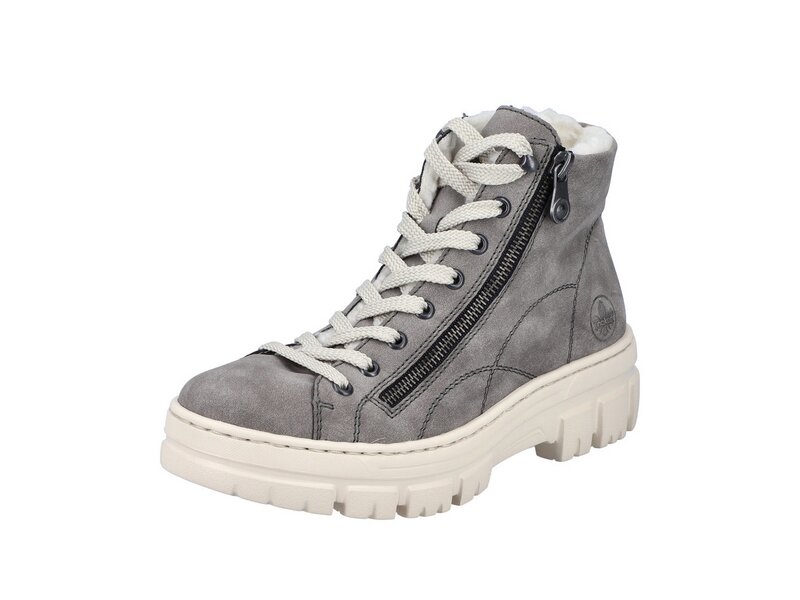 Easy walking, easy living! Diese staubgrauen Schnürstiefel von Rieker überzeugen mit echtem Komfort für die Füße. Trotz Schnürung kann der Schuh ganz einfach mit einem Reißverschluss geschlossen werden. Die Sohle ist sowohl ultra leicht als auch flexibel und bietet damit ein doppeltes Wohlgefühl bei jedem Schritt. Mit der herausnehmbaren Einlegesohle verfügen die Schnürstiefel über ein weiteres, praktisches Komfort-Feature. Das Modell ist optional auch bis zur Schuhgröße 43 erhältlich. Kuscheliges Warmfutter hält die Füße garantiert den ganzen Tag über schön warm. Let´s rock the cold days!