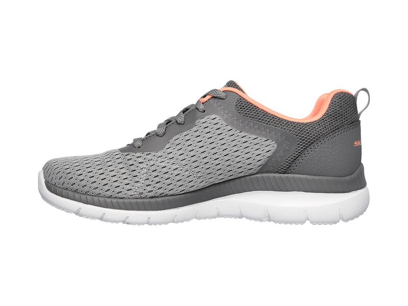 Wenn du nicht nur auf Flexibilität und Polsterung, sondern auch auf einen elegant-dezenten Look stehst, ist der Skechers Bountiful – Quick Path in Grau mit orange Details genau der Richtige für dich.
