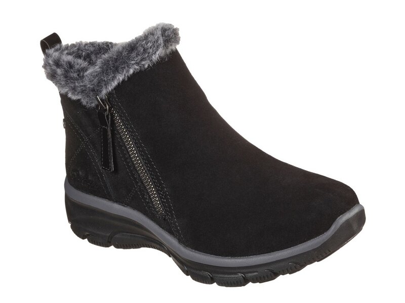 Dezenter, stylischer Look kommt jetzt zusammen mit kuschelig-warmem Tragekomfort im SKECHERS Relaxed Fit®: Easy Going - High Zip Stiefel. Legerer knöchelhoher Kaltwetterstiefel mit Seitenreißverschluss und einem weichen Obermaterial aus Wildleder und Kunstpelz sowie Air Cooled Memory Foam Innensohle