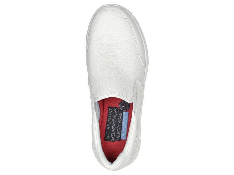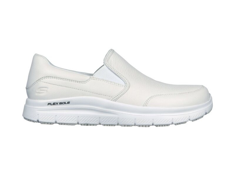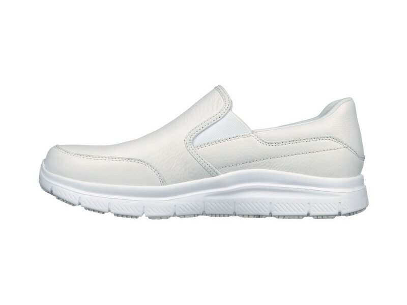 Der SKECHERS Flex Advantage SR –Bronwood, Herren-Berufsschuh als Slipper-Variante mit einer Skechers Memory Foam Innensohle sorgt für einen bequemen Auftritt im RELAXED FIT™ Design. Die Gummi-Laufsohle wirkt rutschhemmend und gibt auch auf unsicheren Untergründen einen guten Halt. Das Ober-material aus glattem Leder und Synthetik, mit Ziernähten ist wasser- und schmutzabweisend. Dieses Modell hat eine "Extra-Weite" Passform.