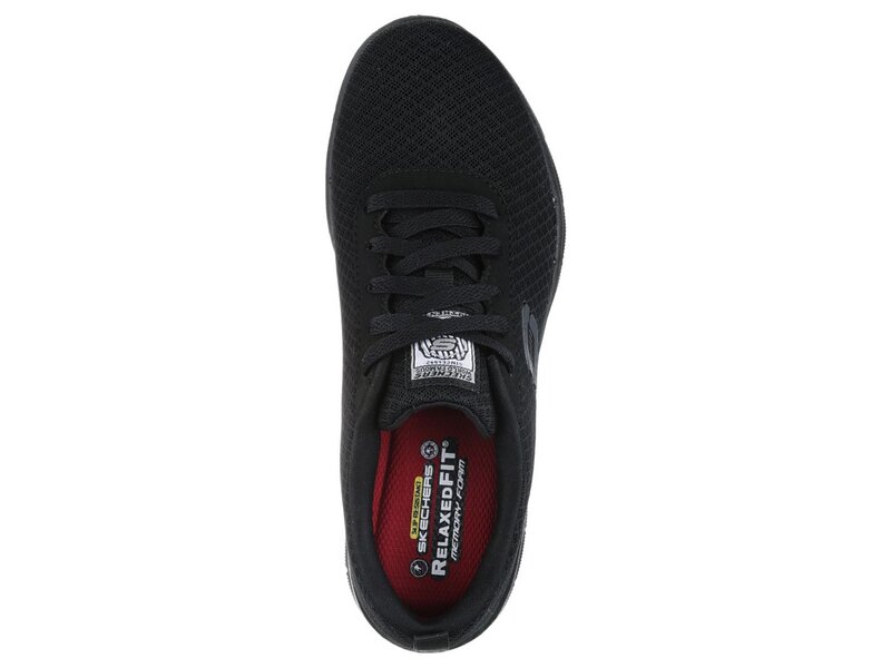 Sportlicher Stil trifft auf erstklassigen Komfort bei dem Skechers Work Relaxed Fit®: Ghenter – Bronaugh SR Dieser rutschhemmende Arbeitsschuh verfügt über ein Obermaterial aus Synthetik und Mesh mit Gittermuster, Schnürung vorne und eine gepolsterte Skechers Air Cooled Memory Foam®-Innensohle.