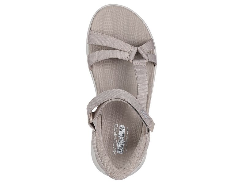 Diese sportliche Sandale mit Riemen ist mit dem exklusiven Skechers Heel Pillow™-Fersenkissen ausgestattet und verfügt über ein Obermaterial aus Mesh mit verstellbarem Ristriemen, ein konturiertes Goga Mat®-Fußbett, eine leichte ULTRA GO®-Dämpfung und zusätzliche Stützung im Fersenbereich.