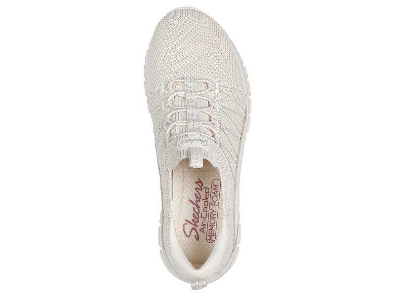 Dieses vegane Modell mit Stretch-Schnürung verfügt über ein Stretch Fit®-Obermaterial aus atmungsaktivem Funktionsstrick mit Synthetik-Overlays sowie eine gepolsterte Skechers Air-Cooled Memory Foam™-Innensohle.