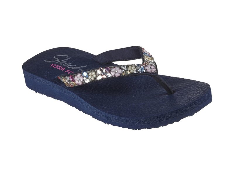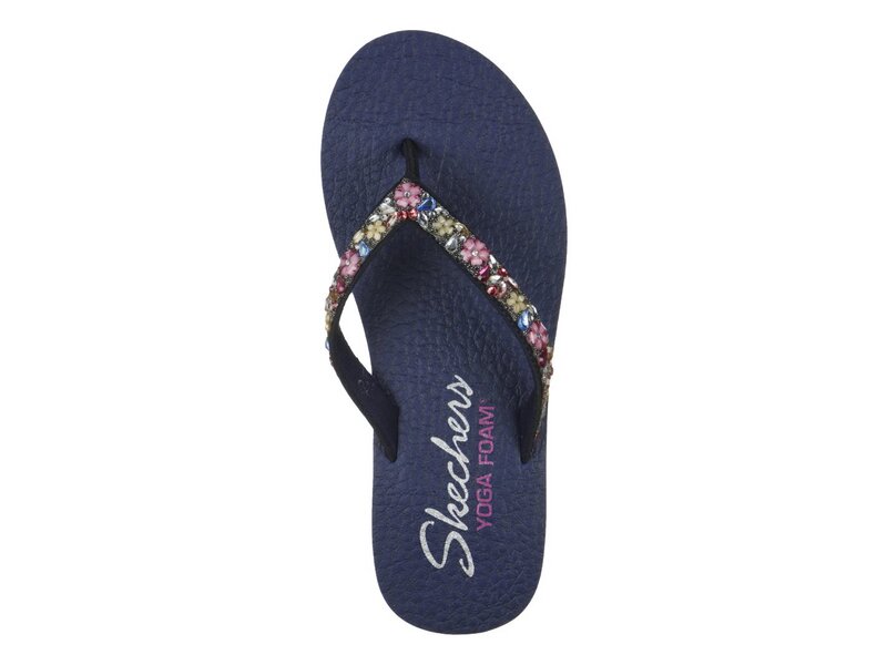 Sonnige Blumen begleiten dich den ganzen Tag in der SKECHERS Cali Meditation – Daisy Garden Sandale. Flache, modische Zehentrennersandale mit einem glatten Obermaterial aus strukturiertem Synthetik und hübschen Blumen- und Metallicakzenten Komfortables YOGA FOAM® Fußbett.