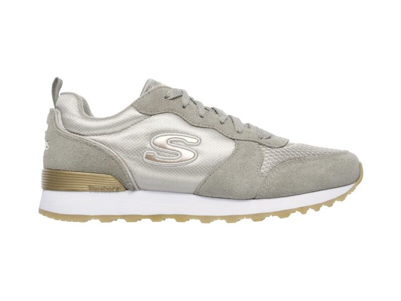 Die sportlichen und vergnüglichen Anfänge zusammen im SKECHERS Originals OG 85 - Goldn Gurl Schuh. Klassischer Retro-Jogging-Sneaker zum Schnüren mit einem Obermaterial aus weichem Wildleder, Synthetik und Mesh-Gewebe mit Ziernähten und Overlay-Akzenten. Innensohle aus Air Cooled Memory Foam.