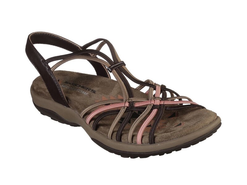 Dehnbarer Komfort, sportlicher Style und gepolsterte Stabilität in einem Gesamtpaket: Das ist die SKECHERS Reggae Slim - Spliced Sandale. Eine sportliche Riemensandale zum Hineinschlüpfen mit Fersenriemen und einem Obermaterial aus weichem, elastischem Gewebe mit Knotendetails Memory Foam Fußbett.