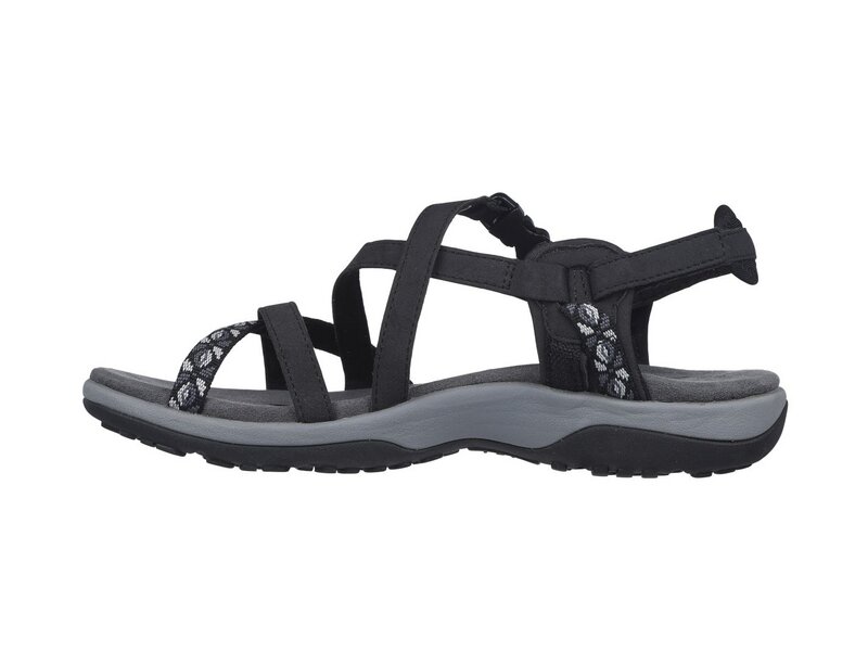 Mit der SKECHERS Reggae Slim - Vacay Sandale genießt du immer und überall modischen Stil und erstklassigen Komfort. Legere, bequeme und sportliche Riemensandale mit einem Obermaterial aus Glattlederimitat und gewebtem Stoff sowie verstellbaren Riemen. Memory Foam Innensohle.