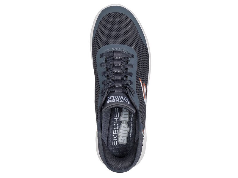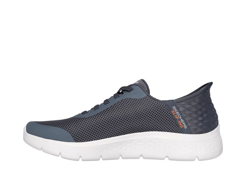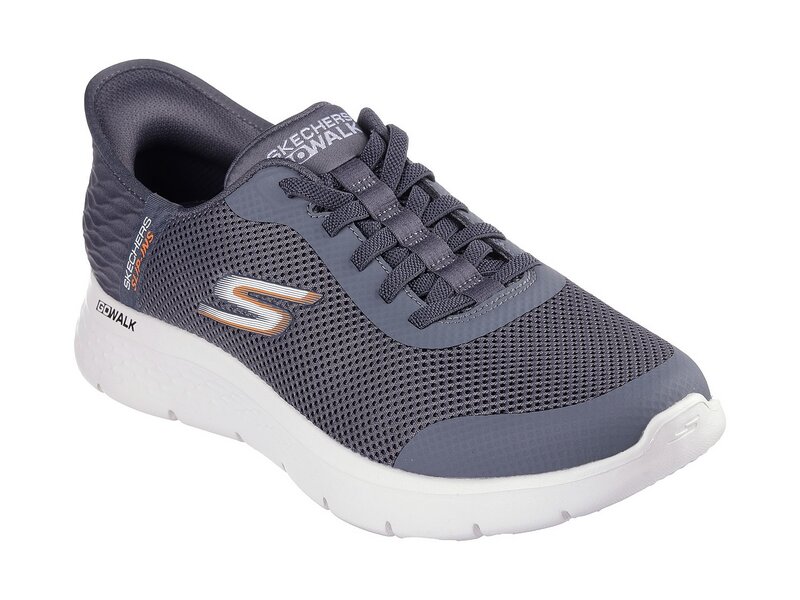 Einfach reinschlüpfen und loslaufen – mit dem Skechers Hands Free Slip-Ins® GO WALK® Flex – Hands Up in Grau. Der sportliche Herren-Sneaker kombiniert unkomplizierten Komfort mit modernem Design.