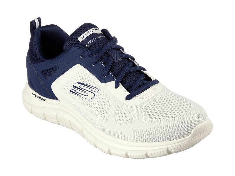 Gönne dir mit dem Skechers Track - Broader beim Training flexiblen Komfort. Dieser vegane Trainingsschuh mit Schnürung verfügt über ein Obermaterial aus Mesh und Synthetik sowie eine gepolsterte Skechers Memory Foam-Innensohle.