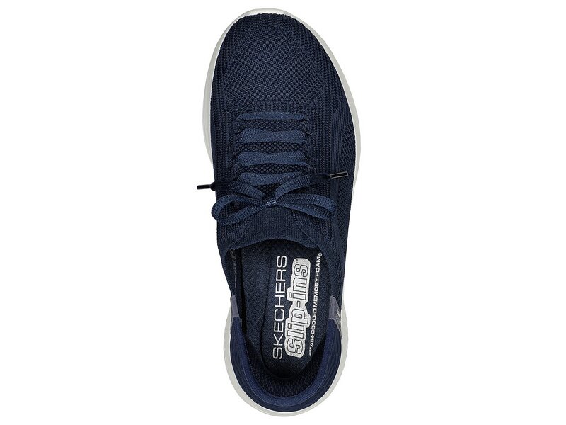 TOUCHLESS FIT[trademark]: So einfach wie mit den Skechers Hands Free Slip-ins[trademark] : Ultra Flex 3.0 - Brilliant Path war Anziehen noch nie. Mit einem einzigartig geformten Fersenpanel. Dieses Modell verfügt über ein Stretch Fit[registered]-Obermaterial aus technischem Gewebe mit Deko-Schnürsenkeln, ein Ankle Pillow[trademark] für zusätzlichen Komfort sowie eine gepolsterte Skechers Air-Cooled Memory Foam[registered]-Innensohle.