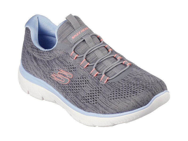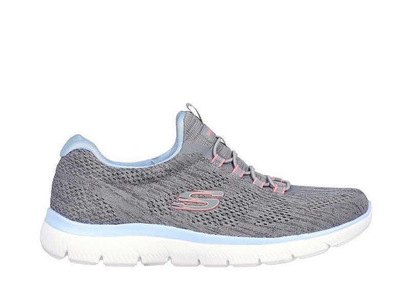 Der Skechers Summits – Fun Flair in Grau mit hellblauen Details kombiniert sportlichen Stil mit flexiblem Komfort.