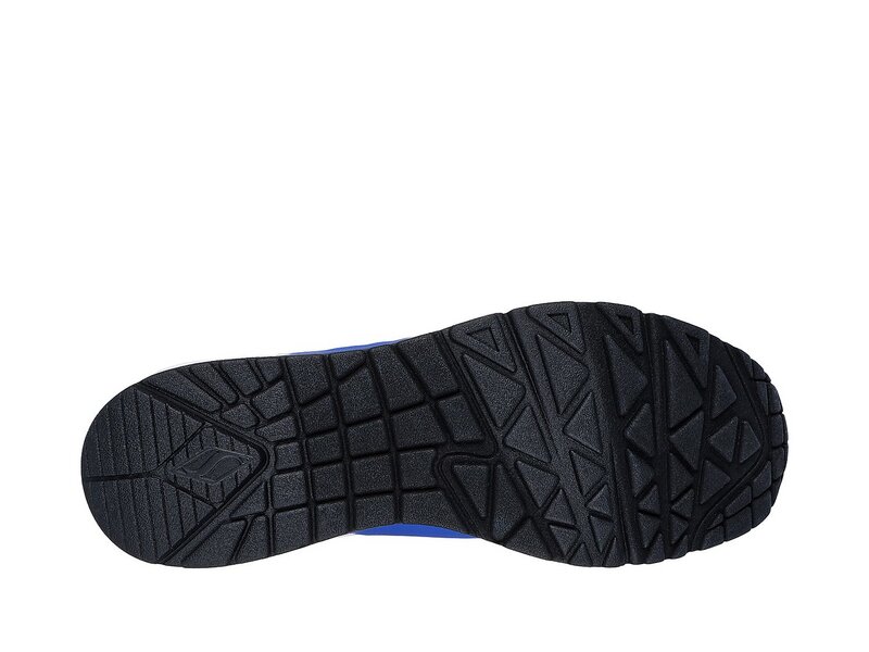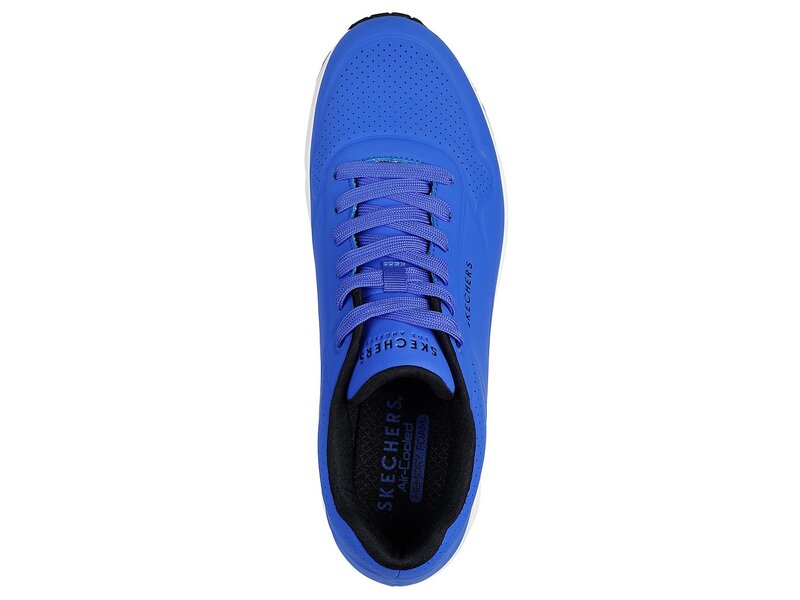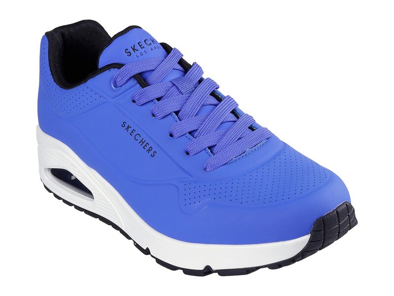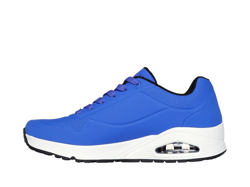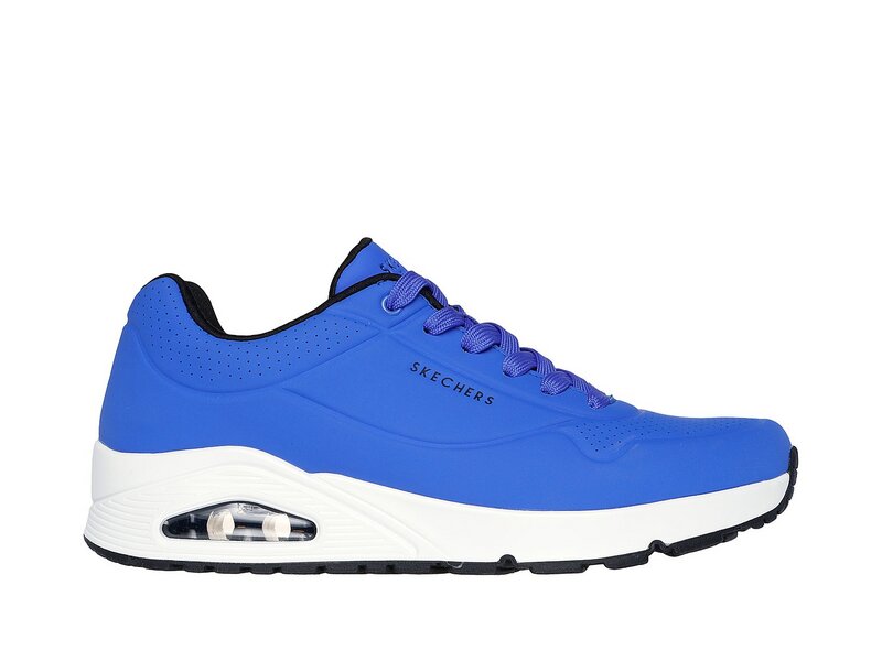Klassischer luftgepolsterter Look trifft auf modernen Komfort im SKECHERS Uno - Stand on Air Schuh. Klassischer, sportlicher Sneaker im Joggerstil zum Schnüren mit einem Obermaterial aus Synthetik mit Glattlederstruktur sowie Ziernähten und Perforationen. Air Cooled Memory Foam Innensohle, sichtbare Zwischensohle mit Luftkissen-Dämpfung.