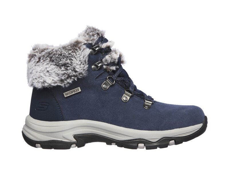 Mach dich bereit für jedes Wetter und echte Herausforderungen mit den Skechers Trego-Stiefeln. Diese knöchelhohen Hiking-Stiefel zum Schnüren verfügen über ein wasserfestes Obermaterial aus weichem Wildleder und Mesh sowie Ziernähte und Overlay-Akzente. Ein Kunstpelzbesatz am Kragen und eine Air-Cooled-Memory-Foam® -Innensohle runden das Design ab.