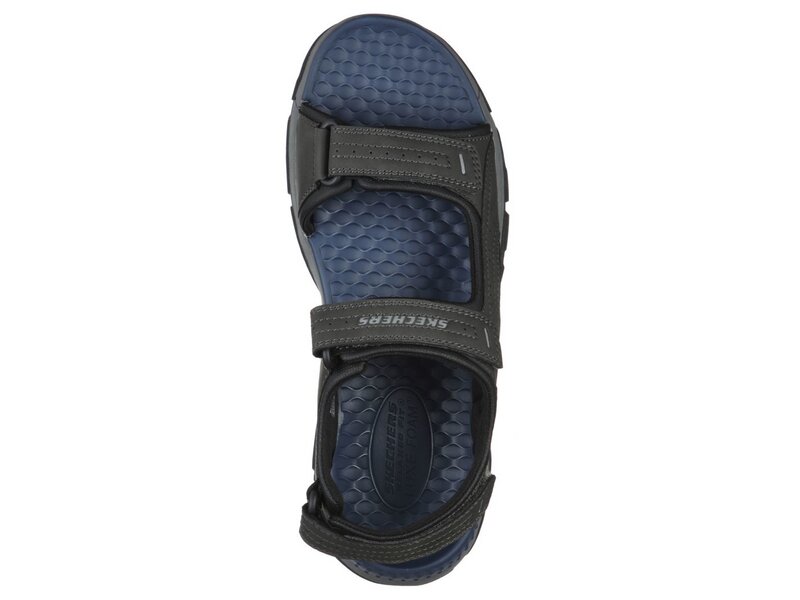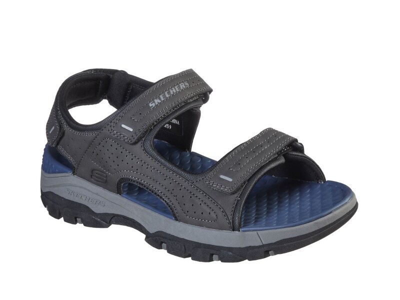 Werde Trendsetter in Sachen Sportlichkeit und langanhaltender Komfort mit der SKECHERS Relaxed Fit®: Tresmen - Garo Sandale. Legere, sportliche und verstellbare Sandale mit einem Obermaterial aus glattem, widerstandsfähigem Synthetik und bequemem Luxe Foam Fußbett mit Dämpfung.