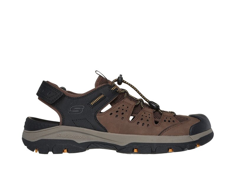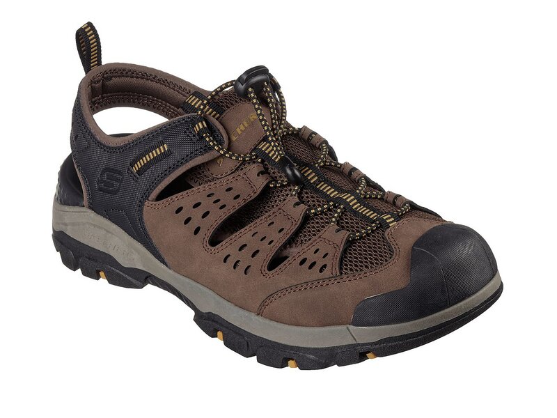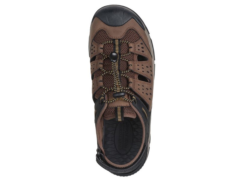 Bleiben Sie den ganzen Tag bequem in den Skechers Sandalen Tresmen Menard für Herren. Genießen Sie eine locker sitzende, geschlossene Sandale im Fisherman-Stil mit strapazierfähigem Synthetik-Obermaterial, gepolstertem Luxe Foam-Fußbett und Klettverschluss.