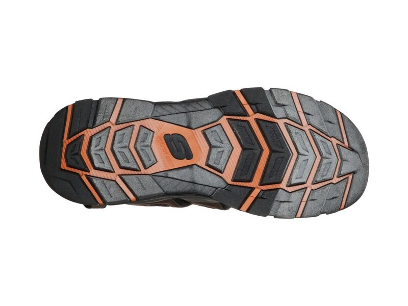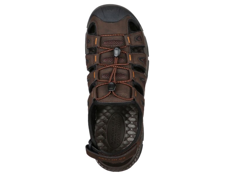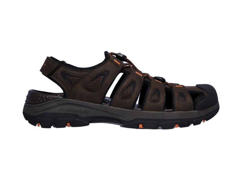 Bereit für jegliche Abenteuer bist du in der bequemen Skechers Relaxed Fit®: Tresmen - Outseen Sandale. Legere, sportliche Sandale zum Hineinschlüpfen im Stil einer Wassersandale, mit geschlossenem Zehenbereich und einem Obermaterial aus glattem, widerstandsfähigem Synthetik und bequemem Luxe Foam Fußbett mit Dämpfung