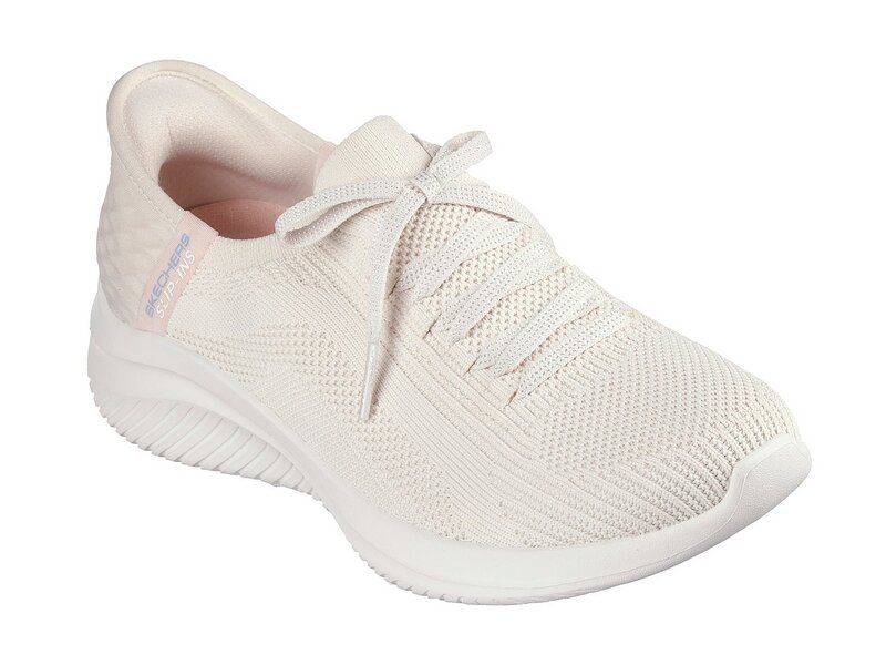 TOUCHLESS FIT™: So einfach war Anziehen noch nie – mit den Skechers Hands Free Slip-ins™: Ultra Flex 3.0 – Brilliant Path in Beige.