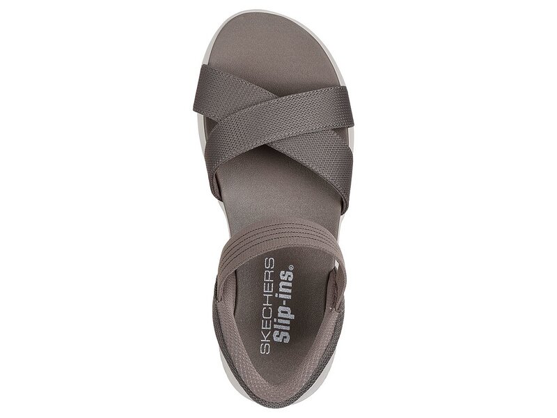 Diese Sandale mit Riemenverschluss ist mit dem exklusiven Skechers Heel Pillow™-Fersenkissen ausgestattet und verfügt über ein Obermaterial aus flexiblem Stretchmaterial sowie ein gepolstertes Yoga Foam®-Fußbett.