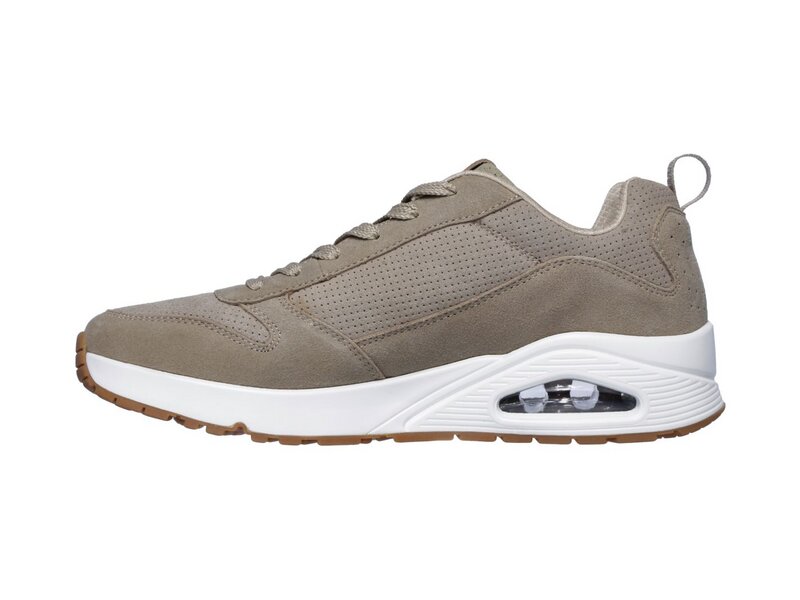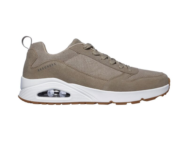 Klassischer luftgepolsterter Look trifft auf modernen Komfort im SKECHER Street Uno Schuh. Klassischer, sportlicher Sneaker im Joggerstil zum Schnüren mit einem Obermaterial aus Glattleder sowie Ziernähten, Overlay-Akzenten und Perforationen. Air Cooled Memory Foam Innensohle, sichtbare Zwischensohle mit Luftkissen-Dämpfung.