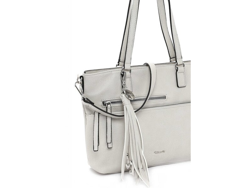 Für jedes Outfit das passende Accessoire Eine Handtasche ist wie eine gute Freundin, sie lässt einen nie im Stich und man kann sich in jedem Fall auf sie verlassen. Der Shopper Adele kommt in Uni-Design mit Reißverschluss-Seitenwand und sieht einfach toll aus. Ob für Office, Uni oder in der freien Zeit - mit ihm lässt sich einfach jedes Abenteuer bestreiten. Gefertigt ist das Modell, das sich mit einem Reißverschluss verschließen lässt, aus Kunstleder. Durch das Material ist es angenehm im Griff. Ein optisches Highlight ist der Shopper mit Echtleder-Optik und dem Uni-Design. Ob chic oder trendy, klassisch oder modern: Tamaris hat für jeden Style eine aufregende Auswahl an tollen Accessoires. Ordnung ist das halbe Leben. Ein übersichtliches Hauptfach und eine Reißverschluss-Seitenwand sind in der Tasche integriert. Ein Reißverschlussfach sichert Portemonnaie, Handy und andere wichtige Dinge vor Langfingern z. B. in der vollen Straßenbahn oder beim Shoppingtrip in der Fußgängerzone. Das Rückfach mit Reißverschluss ist ideal, um zusätzlichen Stauraum zu schaffen und Dinge schnell griffbereit zu haben. Das Modell Adele ist von der Haptik eher weich und daher wirklich angenehm zu tragen. Fransen schmücken optisch und heben den einzigartigen Look dieses neuen Favoriten hervor. Dieser neue Lieblingsbegleiter wird dank längenverstellbarem, abnehmbarem Umhängeriemen und zwei Tragegriffen einfach über der Schulter getragen. Manchmal braucht man etwas mehr Platz in der Tasche. In dieses Modell passt einfach alles - Portemonnaie, Handy und zur Not noch ein Tablet, das einem die Wartezeit auf die Freundin versüßt, wenn sie sich mal wieder verspätet.